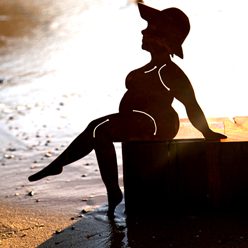 U kunt deze badende schoonheid op een rand of op een verhoging plaatsen bijvoorbeeld bij een vijver.