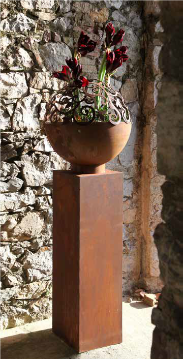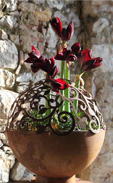 Barok halfrond met ring past precies op schaal halfrond, diameter 50 cm, artikelnummer 000213. Vele decoratie opties zijn mogelijk. U kunt bijvoorbeeld deze schaal voorzien van een bloemstuk met snijbloemen of voorzien van kleurrijke planten. Wanneer u deze op een strakke, vierkante zuil ( breedte 30 cm ) plaatst, creëert uw zelf uw eigen blikvanger.