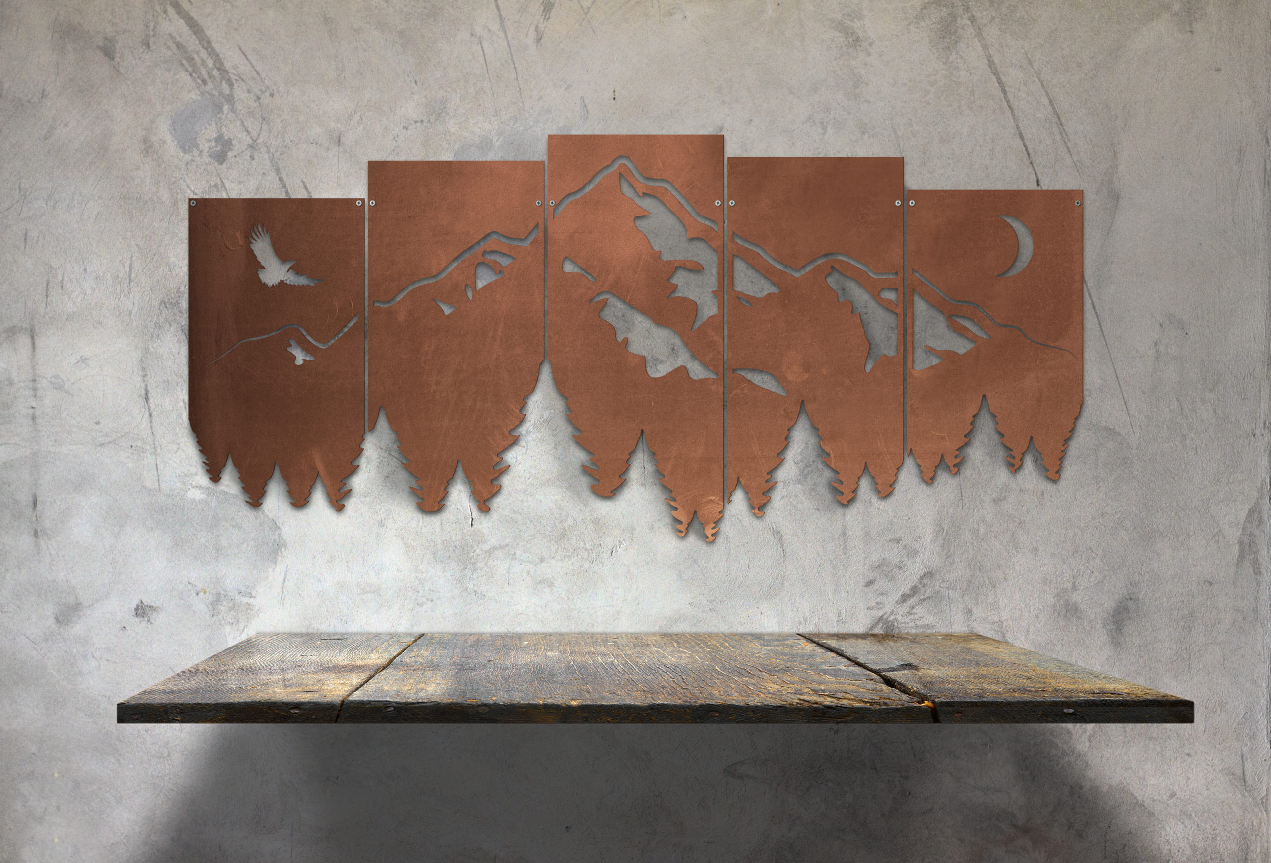Iets verschoven opgehangen geeft dit vijfluik een prachtig berg / bos motief