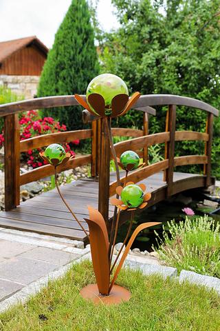 - Deze decoratieve bloem wordt geleverd met vier afneembare glazen bollen. Deze glazen bollen zijn verkrijgbaar in de kleuren rood, geel, groen en rvs look