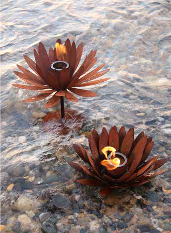 Chrysant met houder voor brandstofgel, op staander, roest design