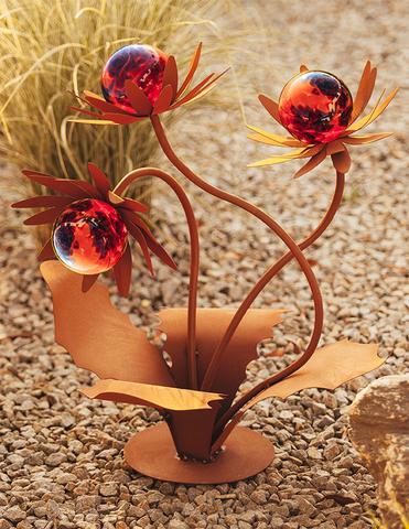 - Deze decoratieve bloem wordt geleverd met drie afneembare glazen bollen. Deze glazen bollen zijn verkrijgbaar in de kleuren rood of geel en groen.