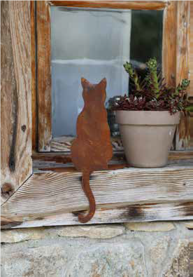 Deze kat kunt u plaatsen op elke rand, plank, vensterbank of tuinmuur.