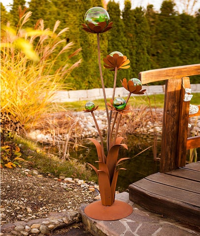 Decoratieve magische bloem voorzien van vijf glazen bollen, roest design