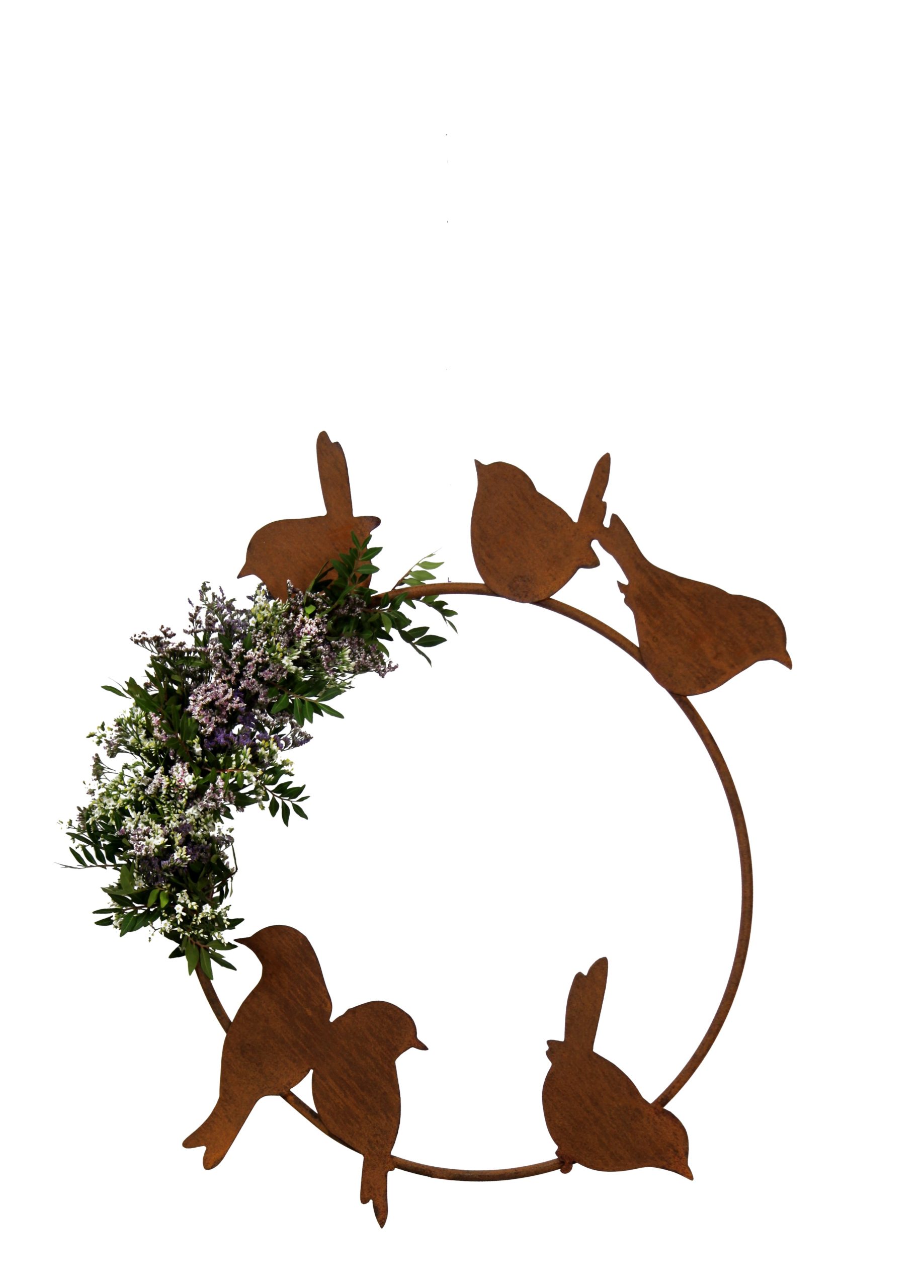 Decoratieve vogelring vertikaal voorzien van 6 vogels, roest design