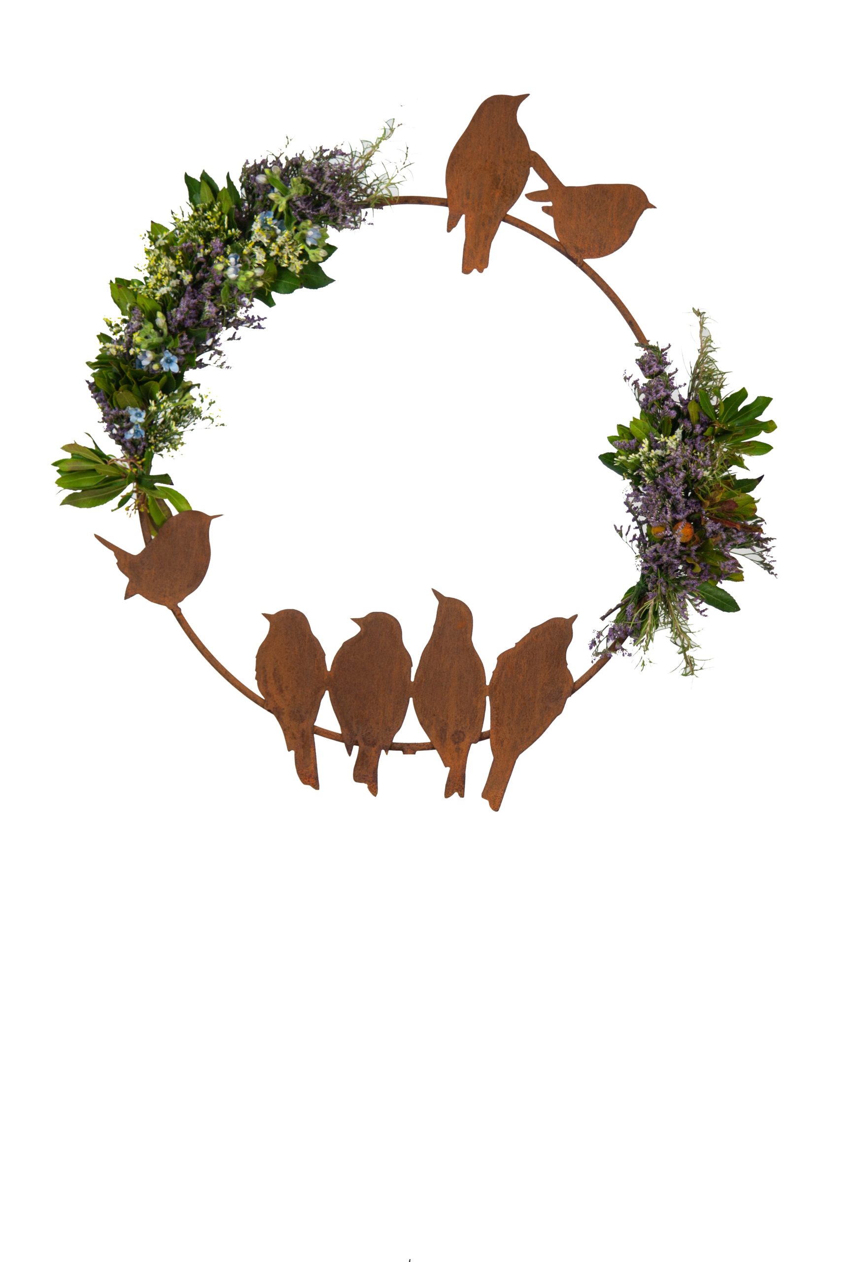 Decoratieve vogelring vertikaal voorzien van 7 vogels, roest design