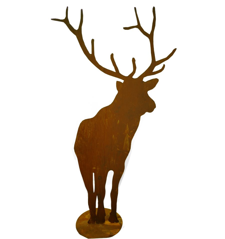 - Herten silhouet vanaf de voorkant op bodemplaat. Wanneer u in een bosrijke of groene omgeving woont komt dit decoratief hert bijzonder tot zijn recht. Leuk om dit hert te combineren met bijpassende ree. Creëer het bosleven in uw achtertuin ook eventueel te combineren met andere dieren. Het hert is ook verkrijgbaar in de hoogte 190 cm, alleen op aanvraag.