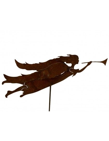 Engel met dubbele vleugels en trompet, tuinsteker, roest design