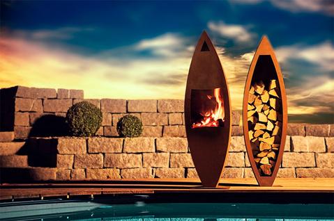 Tuinhaard en houtopslag Rustic, roest design