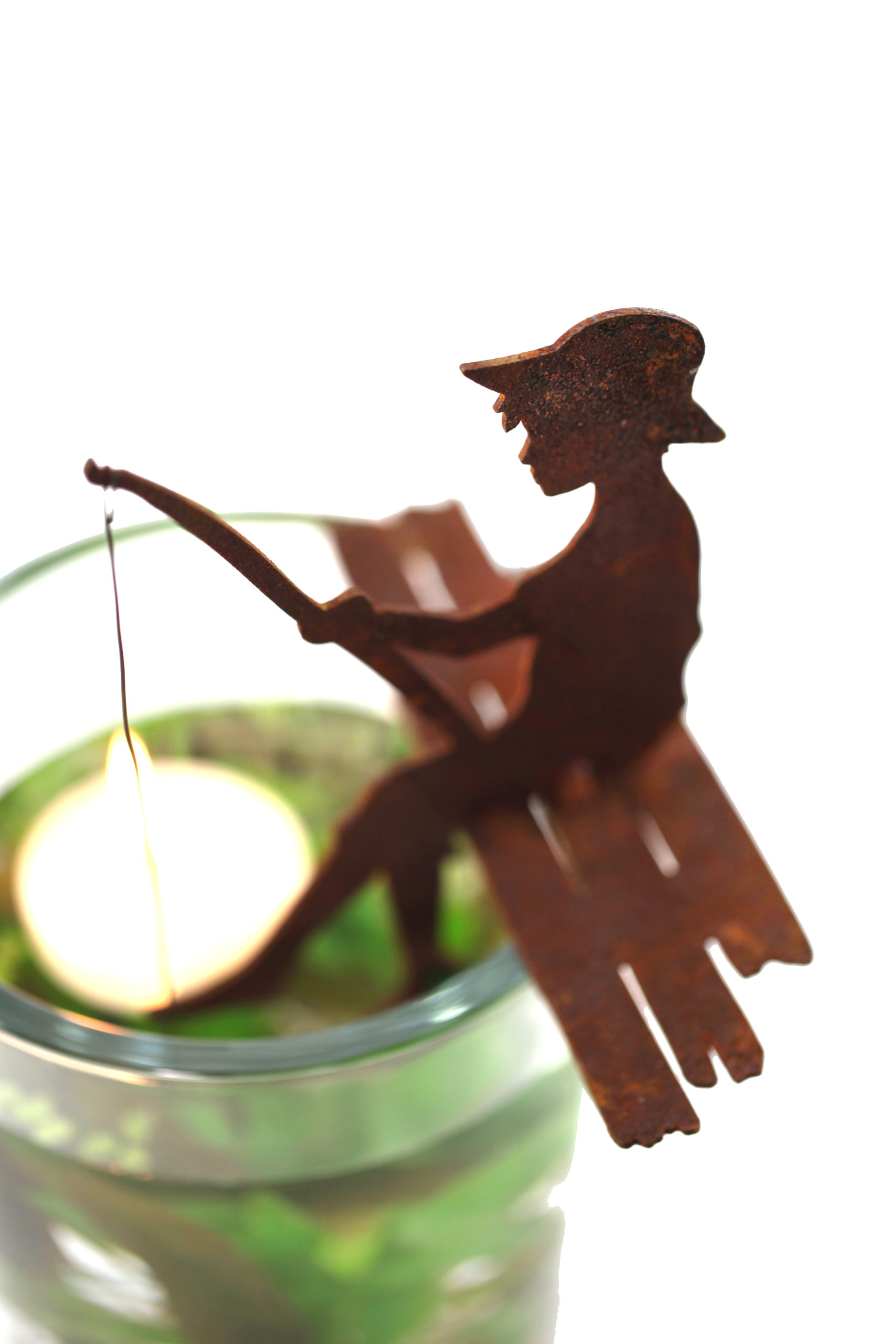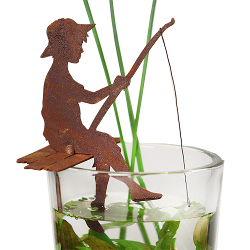 Kleine visser zittend op een brug, roest design
