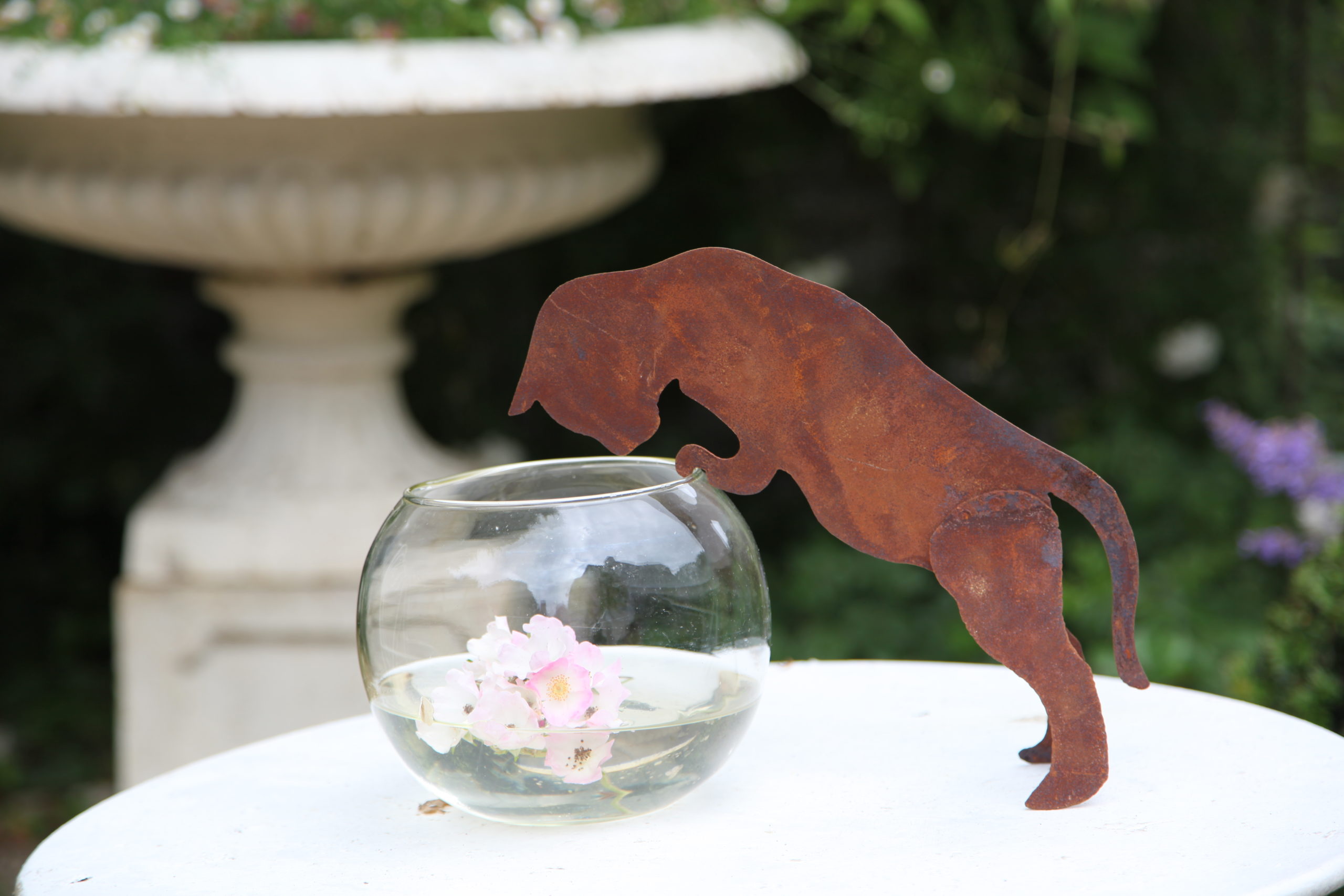 Nieuwsgierige kat om aan viskom te hangen, roest design