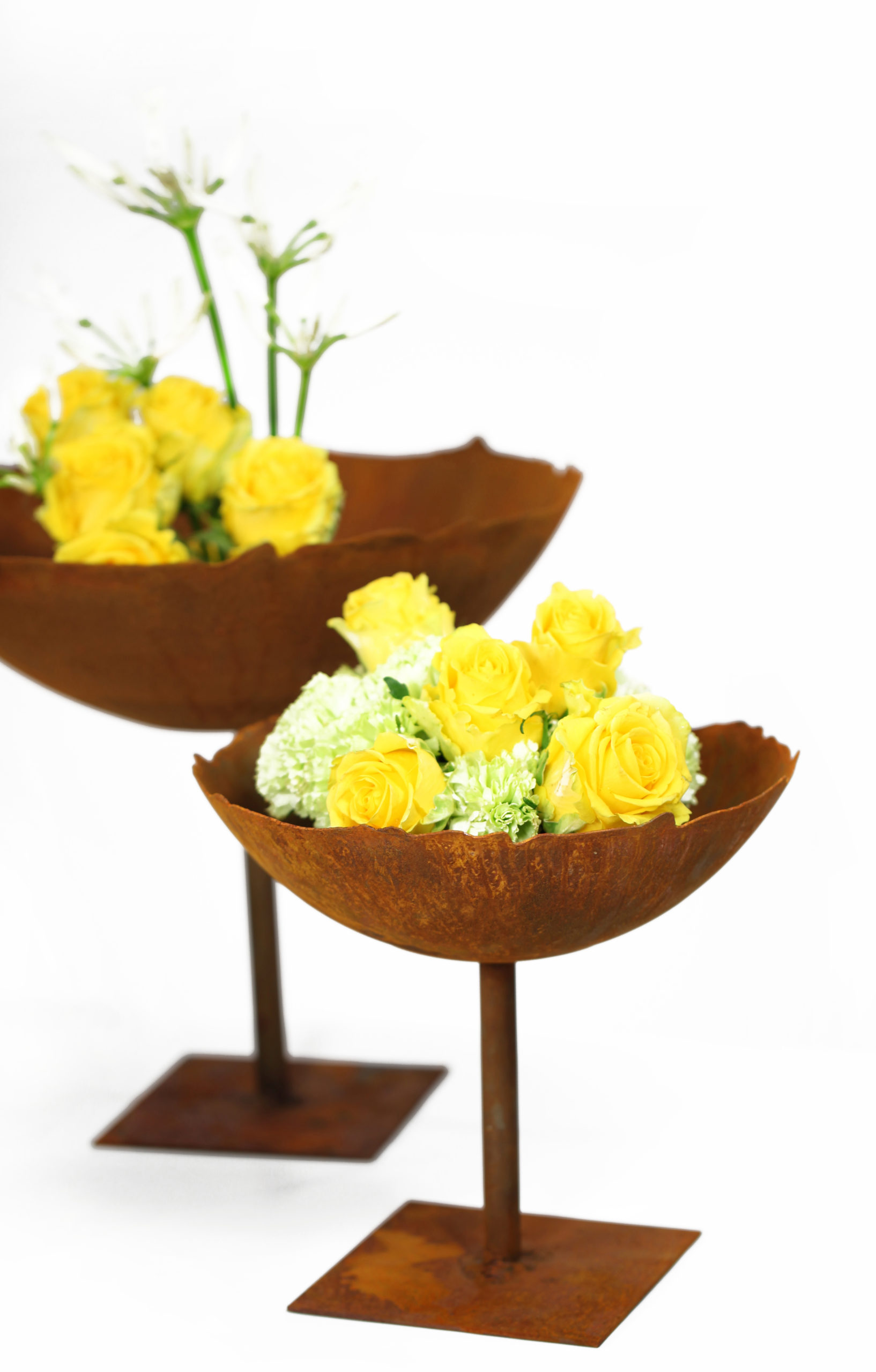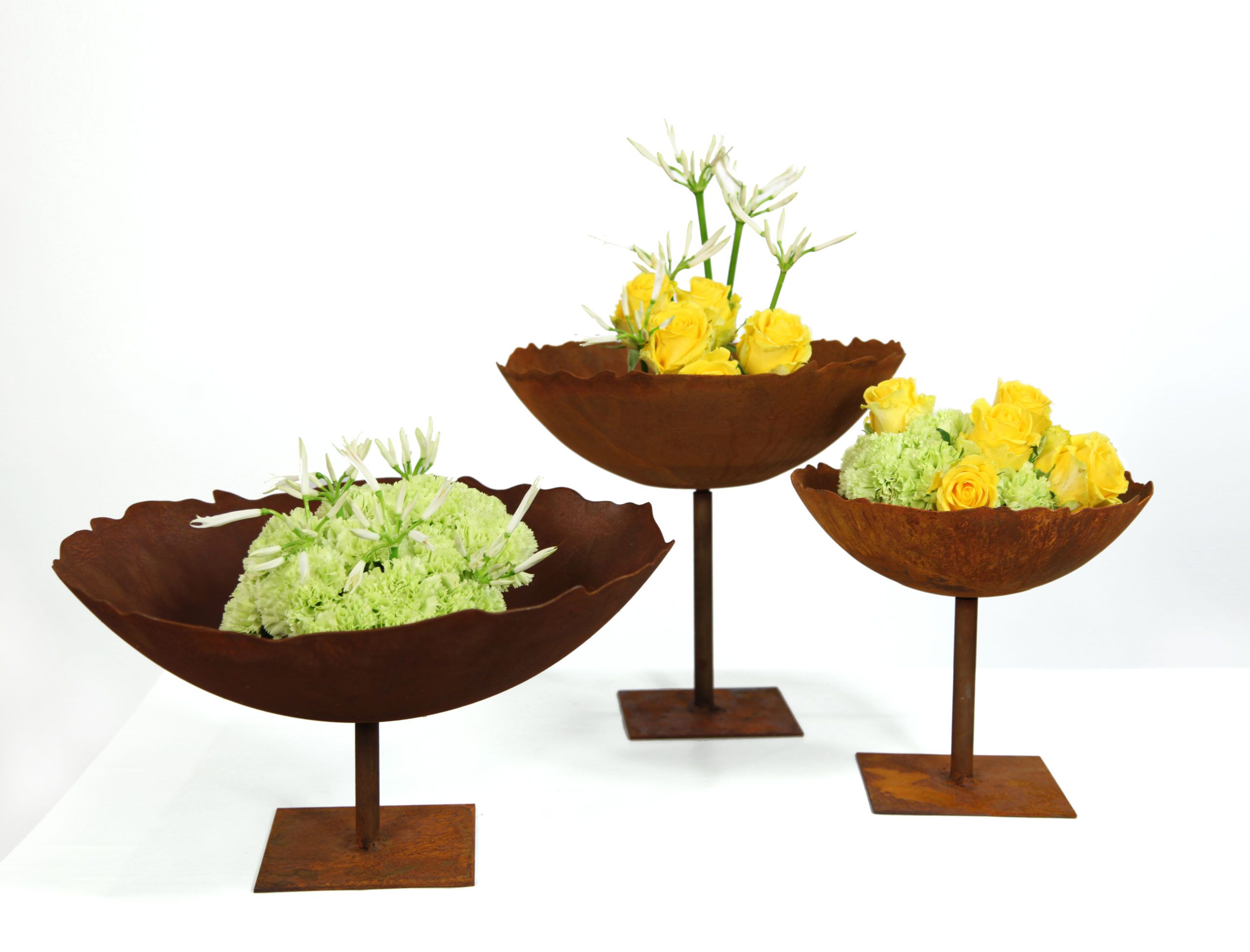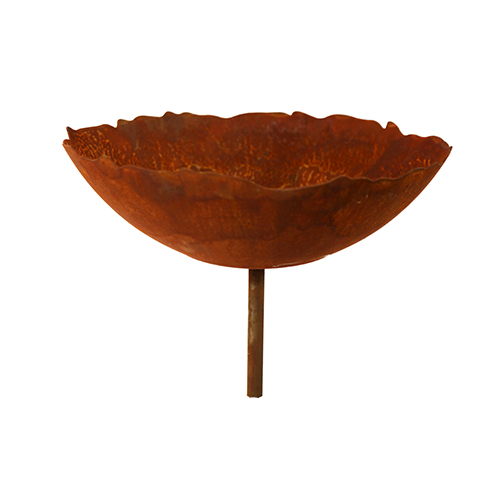 Platte schaal met een licht golvende rand voorzien van korte buis, roest design