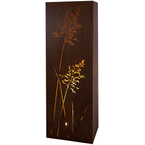 Rechthoekige zuil met grasmotief, roest design