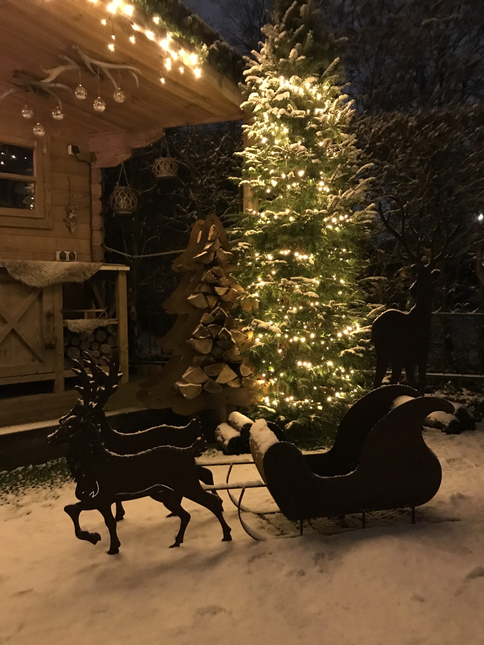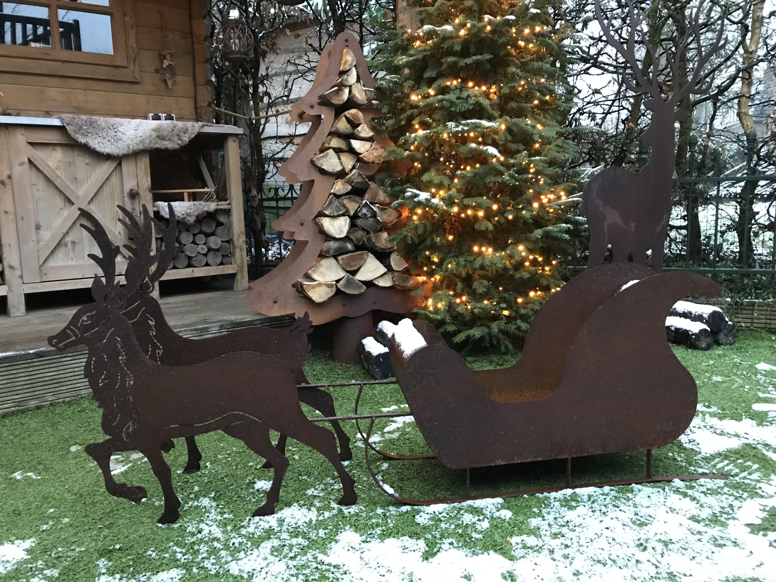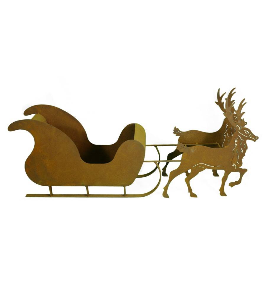 - Twee rendieren met decoratieve slede geschikt voor buiten. Creëer het ultieme kerstgevoel in uw tuin. Slede is aan de onderkant gesloten en kan fungeren als een bak. Misschien leuk om zelf een kerstman te maken van natuurlijke / bijzondere materialen (geschikt voor buiten) die men in de slede kan plaatsen wat het plaatje natuurlijk compleet maakt.