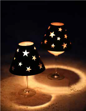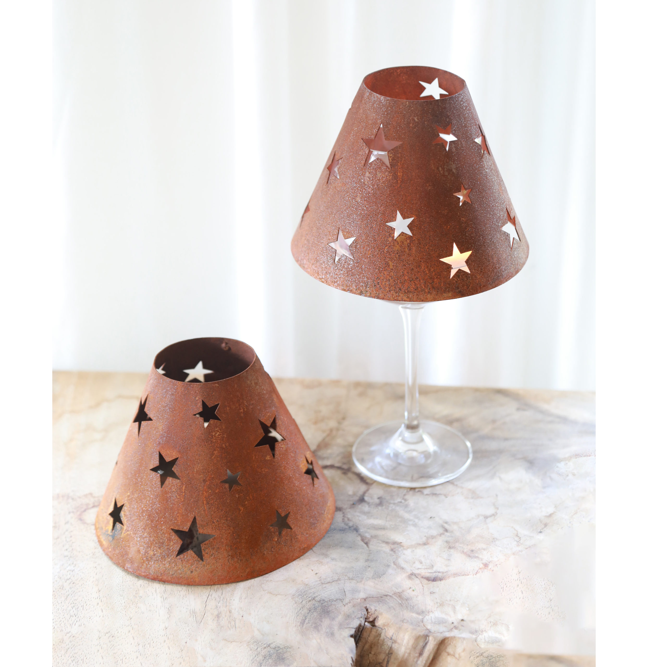 Wijnglas lampenkap, sterren, roest design