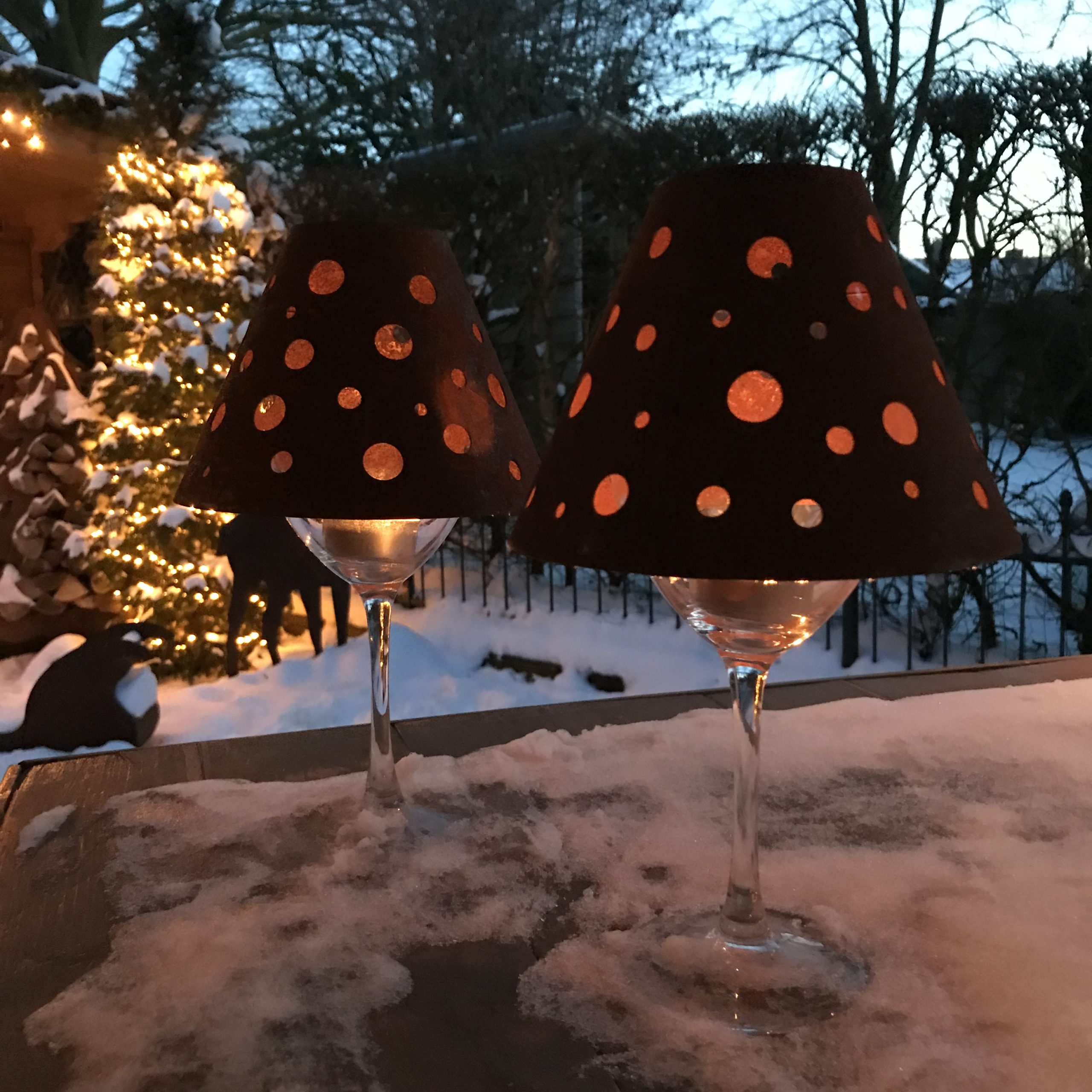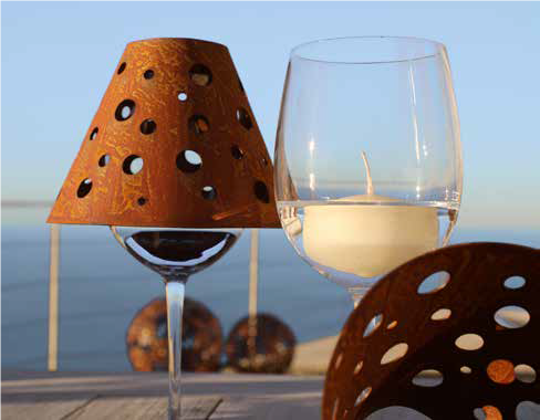 Wijnglas lampenkap, stippen, roest design