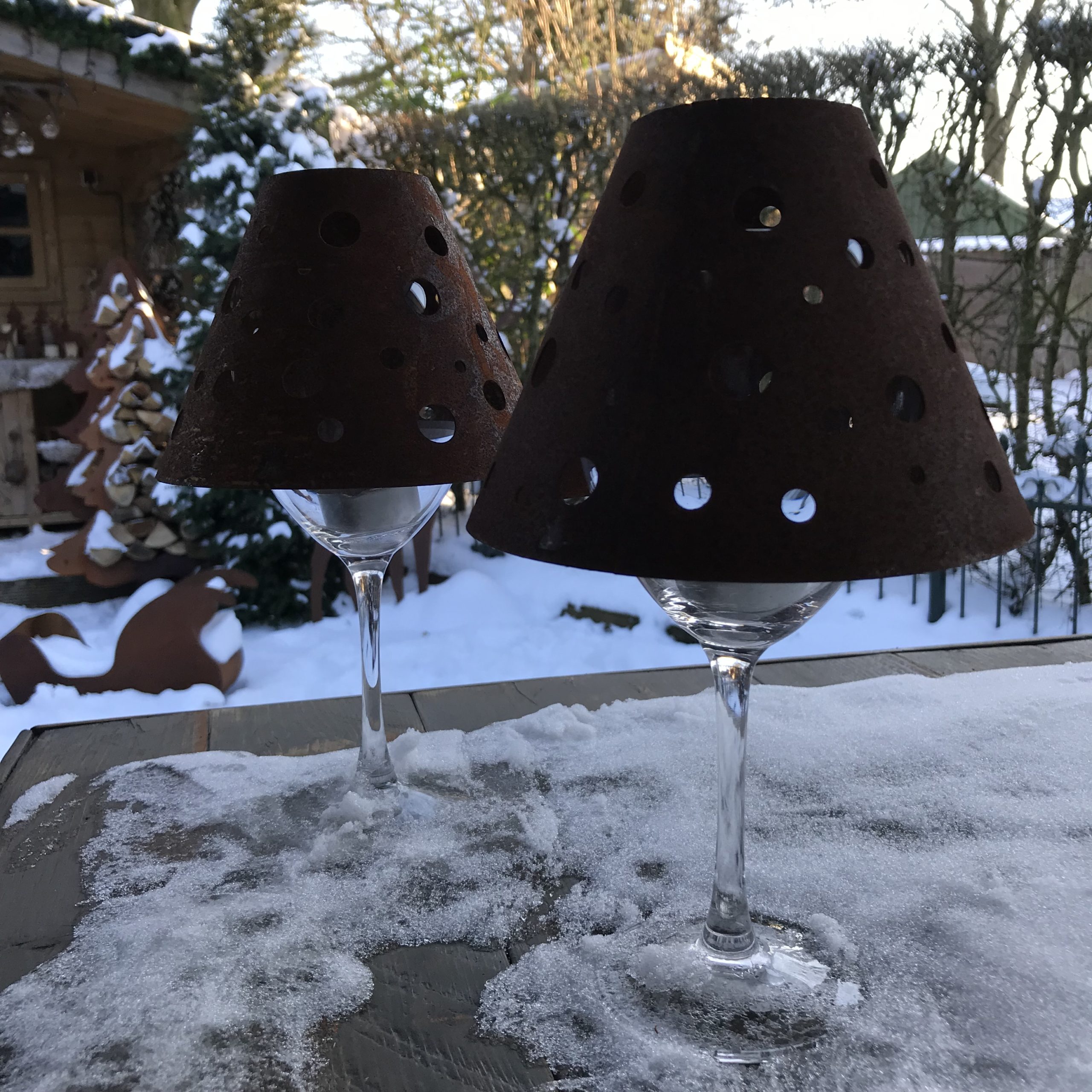 - Een leuk idee voor het gebruik van oude wijnglazen. Schuif deze gewoon over een oud groot wijnglas